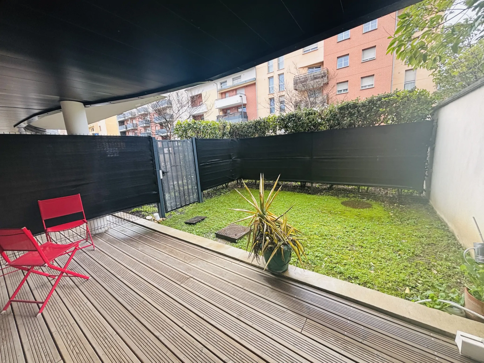 Avenue de Fronton- Agréable appartement T3 de 63 m2, situé en rez-de-jardin d'une résidence fermée et sécurisée de 2012, avec entrée, cuisine ouverte sur le séjour, 2 chambres, salle de bain et WC séparé.